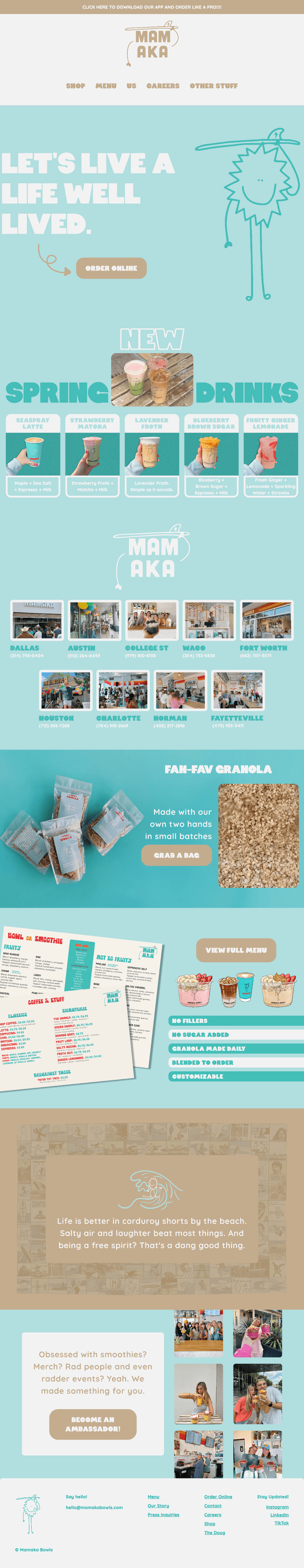Key parts of the Mamaka experience, including their locations, seasonal specials, granola shop, and ambassador program, were either buried deep in the site or absent from the homepage entirely. A first-time visitor would have no idea how much Mamaka actually has to offer.